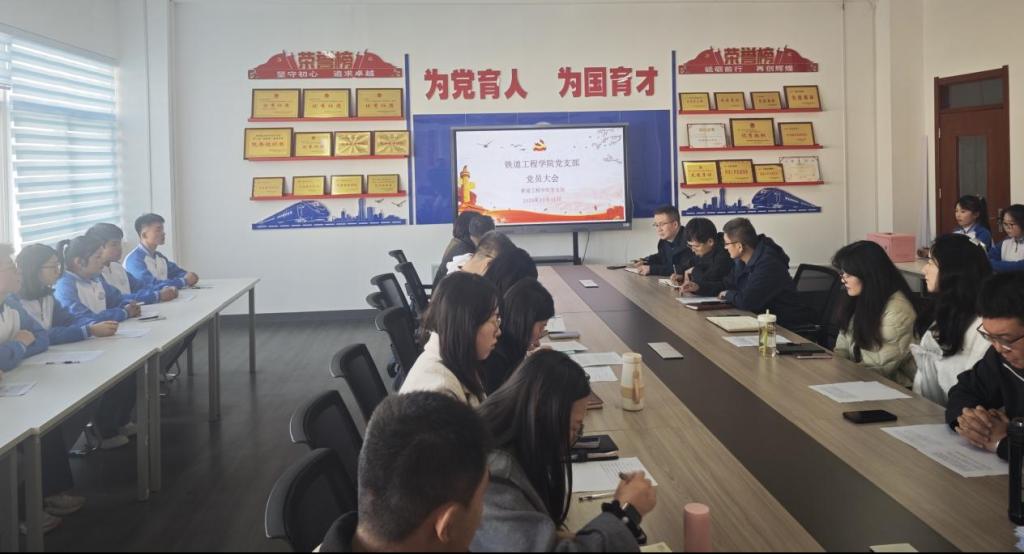 为深入学习贯彻党的重要精神,严格落实党员发展程序,2025年11月11日下午,铁道工程公司党支部在行知楼南207(党建活动室)召开党员大会。本次大会围绕学习《中共中央关于制定国民经济和社会发展第十五个五年规划的建议》、讨论接收18名发展对象转为预备党员展开,会议由支部书记满春燕主持,支部全体党员及18名发展对象参会。