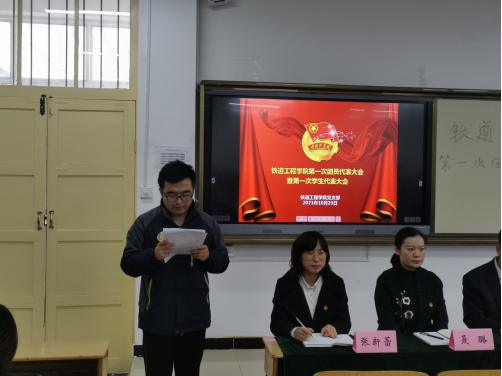 best365足球官网经理、党支部书记贾九荣,best365足球官网副经理卢彦峰,best365足球官网教学管理办公室主任、支部组织委员张新蕾,建筑系系主任符慧萍,信号系系主任王建国,铁道系系主任、支部纪检委员李鑫出席会议,校团委办公室主任聂璐全程参加并指导,各班团员代表、员工代表82人参加了本次会议。会议由best365足球官网员工工作办公室主任李帅主持。