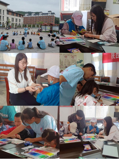 下午,实践活动正式拉开帷幕,团队成员们给小朋友们辅导暑假作业、教他们画画,给他们表演节目,和他们聊天,同时为小朋友们发放小礼物,陪伴着他们度过了一下午快乐的时光,整个教室里充满了欢声笑语。