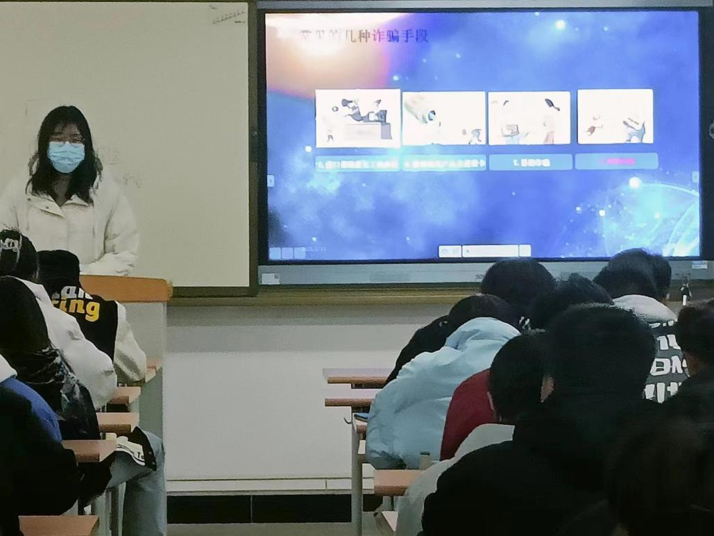 班会上,辅导员老师们从什么是网络电信诈骗、网络电信诈骗的现状和特点以及网络电信诈骗的常见类型三个方面,全方位教育员工如何避免被诈骗。教育同学们在生活中做到不轻信、不转账、不上当,遇到类似诈骗要及时报警,更好地保护自己的财产安全。此外,结合近期金台区公安局以及保卫处反诈工作的预警提示,各位辅导员老师们还向同学们介绍了国家反诈中心APP和反诈微信小程序,并说明其防诈骗功能的原理和实现方式,帮助大家进一步“识别诈骗”,切实提升同学们的防诈骗能力,维护同学们的自身利益。