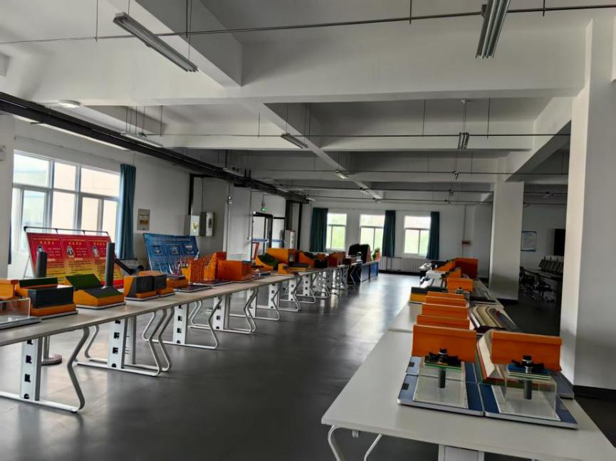 线桥隧模型室共包含64种模型,这些模型主要涉及铁路线路、铁路道岔、路基断面形式、地下空间的结构组成、隧道洞门的类型、桥梁结构的组成、隧道排水方式等,该实训室承担了每届新生来公司后的铁道认知、道桥认知类实践课程,让员工对专业有一个初步的认识,提升了员工对于专业的学习兴趣。同时,在理实一体化课程的教学中,教师可以借助模型加深员工对于课程内容的理解。