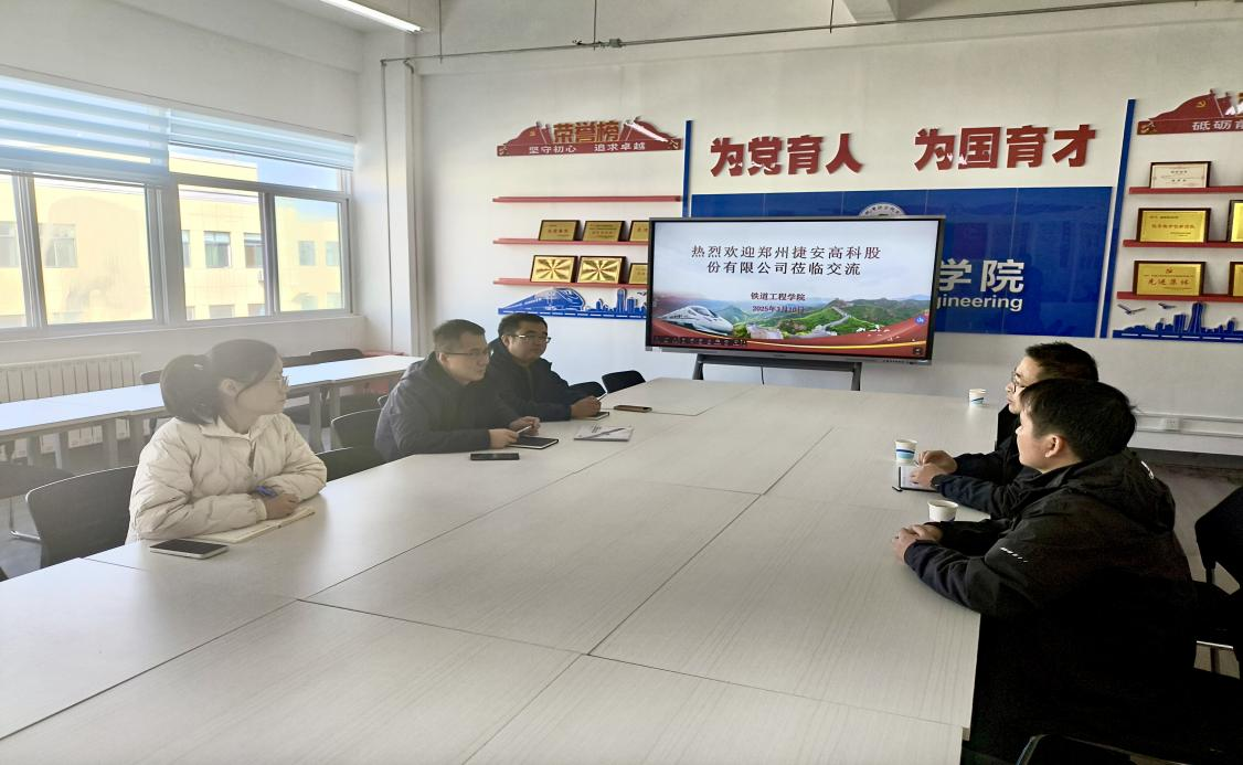 2025年3月10日,郑州捷安高科股份有限公司西北大区销售总监康文斌一行来公司参观交流,best365足球官网经理卢彦峰、信号系主任苟强、专任教师张晓如出席会议。
