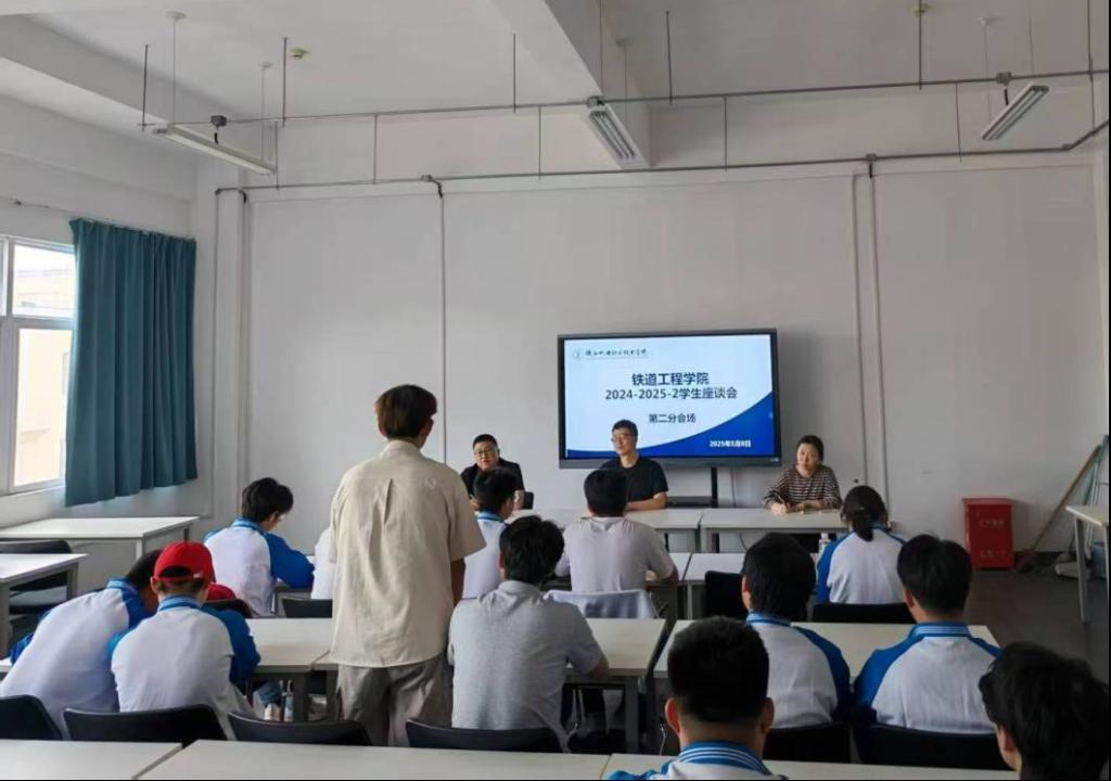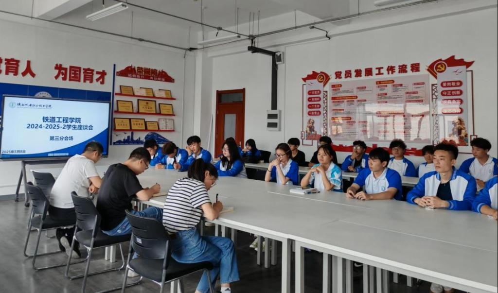 为进一步强化教学过程管理,提升教学质量,畅通教学反馈渠道,保障人才培养质量,深入了解员工对理论教学和实践教学的反馈、教风情况,员工的学习态度、课堂讲授内容接受程度等,best365足球官网于2025年5月8日下午,在行知楼南207、210、212分三个会场召开员工座谈会,best365足球官网副经理李鑫、副经理张新蕾、建筑系系主任孙拴虎、铁道系系主任贾强、信号系系主任苟强、各系教师代表史明洋、杨照、张晓如及各班员工代表80余名同学参会。