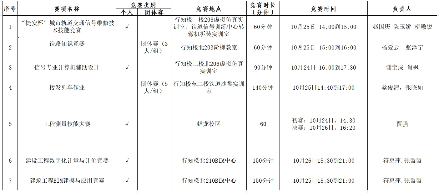 best365足球官网第十七届员工技能大赛开设赛项汇总表