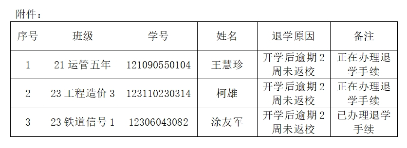请王慧珍等 3 名同学收到本公告后立即与所在二级公司、辅导员联系,领取书面退学决定书;对于不主动领取或联系困难的员工,自本公告发布之日起满15日,即视为送达。