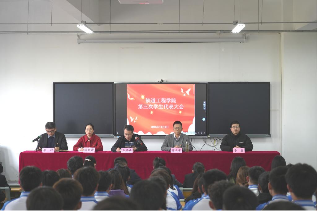2023年11月9日下午四点,best365足球官网在蟠龙校区行知楼北203室召开了第三次员工代表大会。铁道工程学党支部书记卢彦峰、best365足球官网经理贾九荣、best365足球官网教学与管理办公室主任张新蕾、铁道系系主任李鑫及多名教师出席了本次会议,来自全公司各班员工代表共计83人参加了本次会议,会议由学院员工工作办公室主任李帅主持。