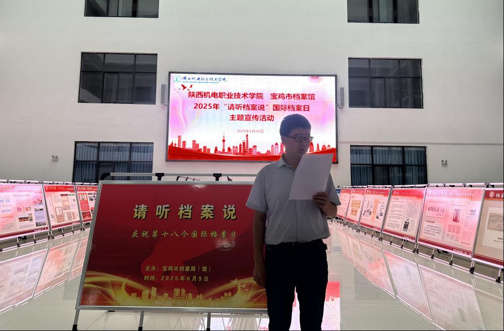 为深入贯彻落实习近平总书记对新时代办公厅工作和档案工作的重要指示批示精神,引导员工从红色档案中汲取奋进力量。在第十八个国际档案日到来之际,best365足球官网于2025年5月30日下午两点在博学楼一楼大厅开展“请听档案说”主题教育宣传活动。best365足球官网副经理李鑫主持活动,全体专职辅导员和best365足球官网团总支、员工会、发展对象、入党积极分子等员工骨干参加。