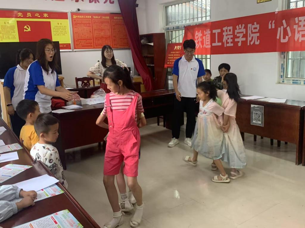 在村里的儿童活动中心,实践团队与孩子们展开了一场别开生面的心理健康游戏互动。队员们组织了五子棋比赛、螃蟹赛跑、釜底抽薪、涂鸦画等一系列充满趣味与挑战的游戏。孩子们在游戏过程中热情高涨,欢声笑语回荡在整个活动场地。这些游戏不仅为孩子们带来了欢乐,更重要的是在游戏中培养了他们的团队协作能力、沟通能力以及面对困难时的应变能力,助力孩子们在游戏中提升心理健康素养,增强团队信任感与团体凝聚力。
