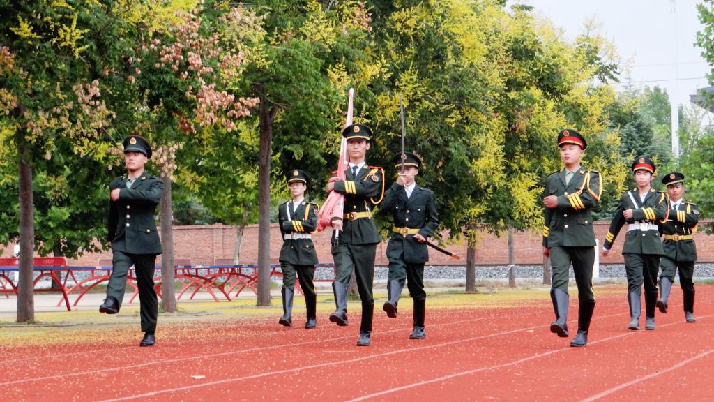 一抹华夏红,万千爱国情。伴随嘹亮的口号声,仪仗队迈着整齐划一的步伐,护送国旗走向国旗台。随着激昂的《义勇军进行曲》响起,全体师生行注目礼,鲜艳的五星红旗冉冉升起,迎风飘扬。
