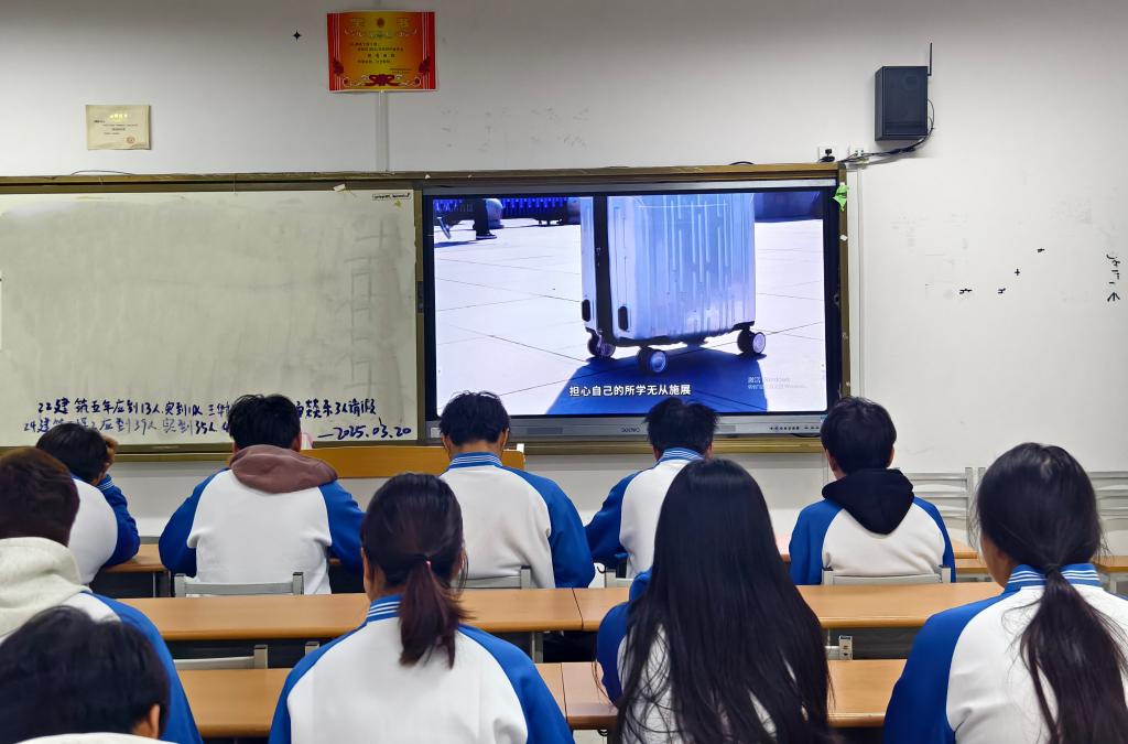 家国情怀、百炼成钢。观看过程中,同学们认真聆听志愿者们的奋斗故事。24铁道工程3班赵高猛表示:“学长学姐们的故事让我深刻体会到,青春的价值在于奉献,今后我希望用专业知识为边疆建设贡献力量。”24建工管理白文倩表示:作为建设工程管理专业的员工,正如“黄沙百战穿金甲”的将士,今后我们要把实验室里的BIM模型转化为边疆大地上的“钢铁长城”。24建筑消防2班艾克拜尔·艾海提表示:作为新疆籍员工,我对戍边精神有着更深体会,愿以“绕指柔”的专业本领,为家乡筑牢“防火墙”,让每个村落都能“风雨不动安如山”!