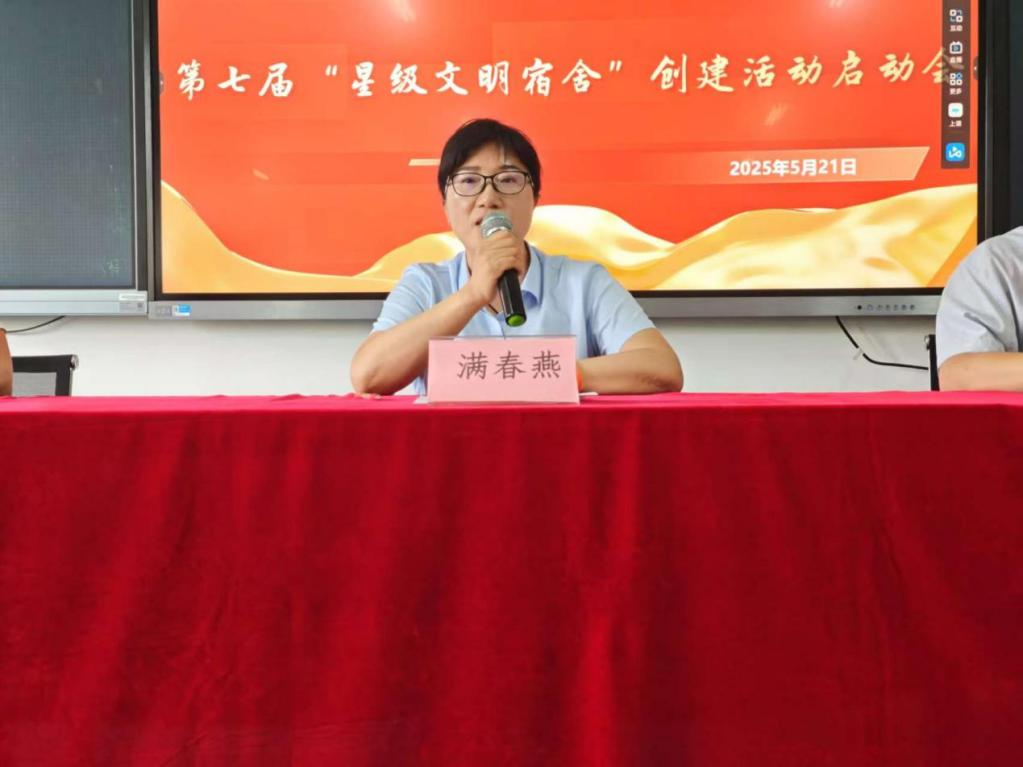 满春燕号召全体同学牢固树立主人翁意识,以高度的责任感积极投身宿舍建设。从整理好个人内务、保持公共区域整洁等点滴小事做起,从自觉遵守宿舍安全规范、维护和谐人际关系等日常行为做起,用实际行动为文明宿舍创建贡献力量。最后,她提出点期望:一是要提高思想认识强化责任担当;二是要明确创建标准严格对照落实;三是加强团结协作共建和谐宿舍;四是注重过程管理,建立长效机制。