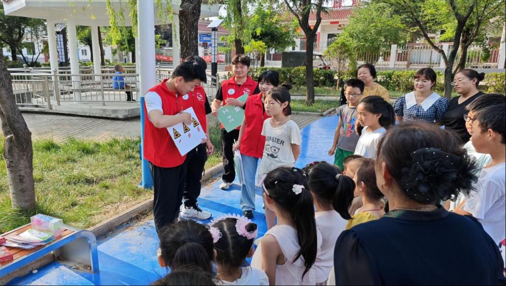 队员们拿着标识,耐心地向围拢过来的孩子们解释道。孩子们听得十分认真,时不时举手提问,队员们都一一细致解答。为了让孩子们更好地记住这些标识,队员们还设计了互动小游戏,通过抢答标识含义遇到不同标识时的正确做法等方式,加深孩子们对铁路安全知识的印象,有效的提高了铁路安全知识牢记心间。