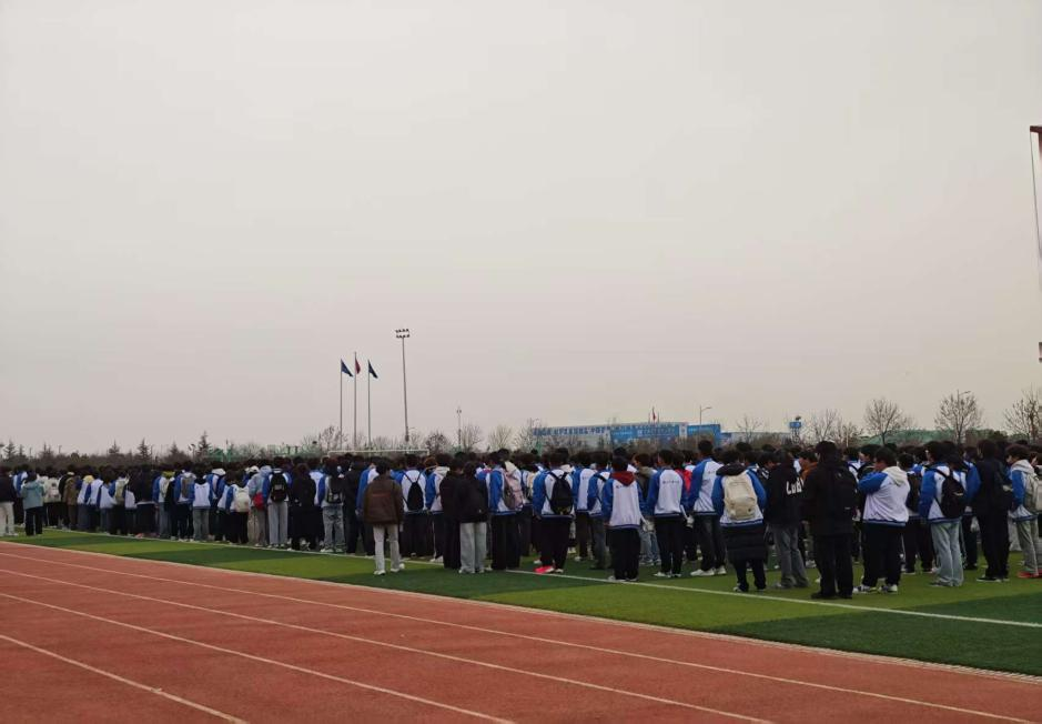 七时五十分,仪式在激昂的进行曲中拉开帷幕。擎旗手24建工管理王荣与护旗手25机械制造黄浩然、韩俊杰迈着铿锵有力的步伐,在指挥手24机电技术9班杨立、25人工智能2班谢伊代·买买提的精准指挥下,将国旗护送至升旗台。