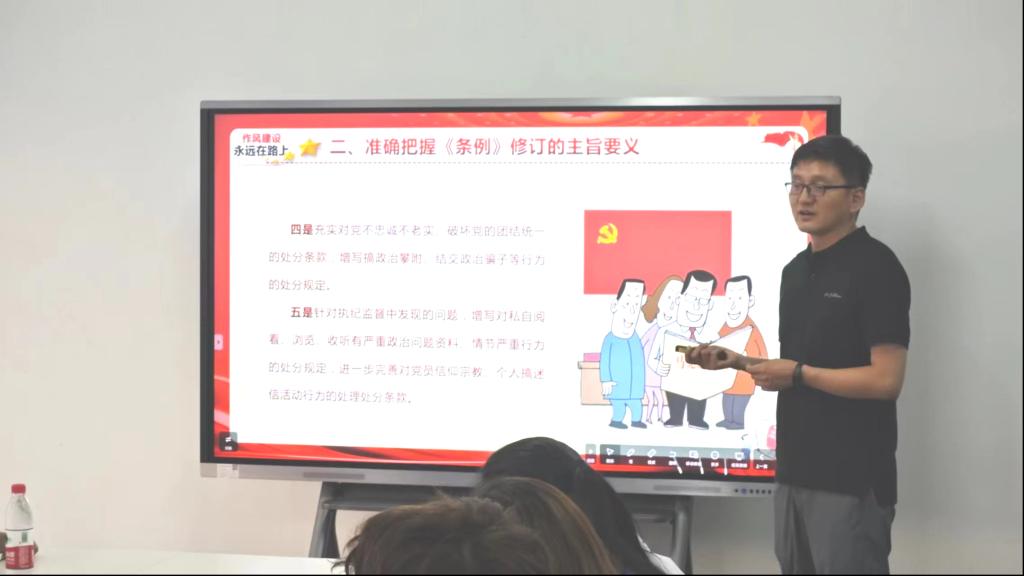 为深入学习贯彻习近平总书记关于青年工作的重要思想,引导入党积极分子进一步坚定理想信仰,强化纪律观念,以优良作风规范自己,擦亮忠诚、干净、担当的青春底色。2024年6月26日,best365足球官网党支部纪检委员李帅同志在行知楼南207为36名员工入党积极分子讲纪律党课。
