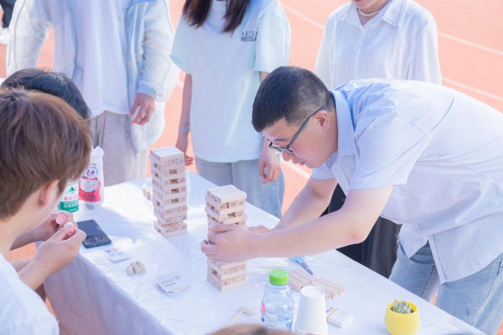 现场活动丰富多彩,共开展心理小游戏7项,设有情绪碎纸机、螃蟹赛跑、旱地龙舟、跳房子、釜底抽薪、叠杯塔、套圈圈等多个趣味活动供师生们游玩体验。在情绪碎纸机活动中,师生们将自己的烦恼扔进碎纸机,看着纸张逐渐破碎,自己的坏情绪和困难也随之烟消云散;在螃蟹赛跑、旱地龙舟、跳房子活动中,师生们通过团队协作完成游戏,在游戏中释放压力,增进友谊;在釜底抽薪、叠杯塔、套圈圈活动中,师生们在游戏过程中开动脑筋,体验游戏的乐趣。本次活动中,同学们不仅以集章打卡的方式获得了小礼物,也收获了满满的快乐,现场气氛欢快热闹。