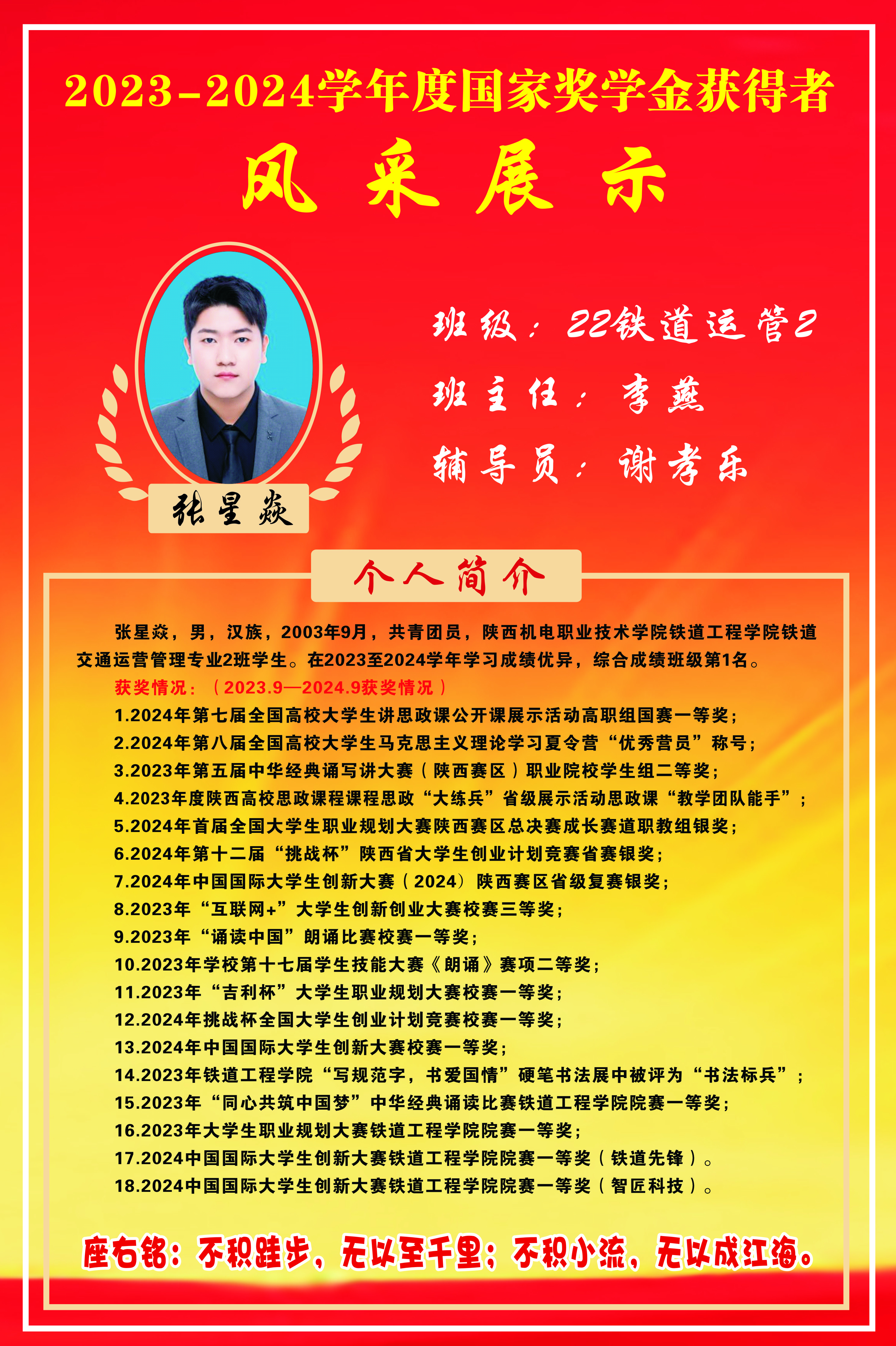 2023-2024国家奖学金获得者风采展示-22铁道运管2班张星焱