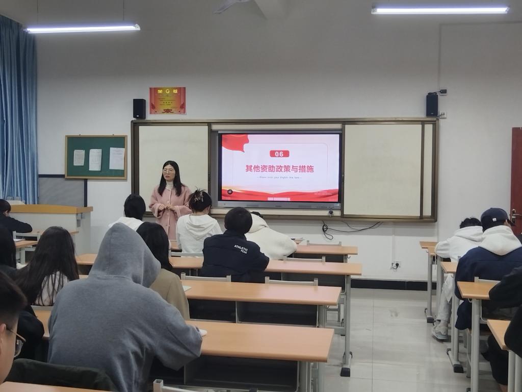 班会上,各班主任通过文件解读、PPT展示、资助育人案例等形式,系统讲解国家奖学金、国家励志奖学金、国家助学金、生源地信用助学贷款、临时困难补助、校级奖学金等项目的意义、申请条件、评审流程及资助标准,让同学们对资助政策有了全面且清晰的认识。