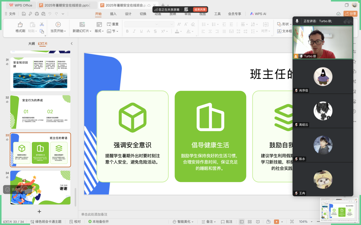 接着,班会针对防溺水、防电诈、防火防盗、防自然灾害、食品安全、消防安全、网络安全、交通安全、高温天气防中暑、心理安全等方面进行了深入讲解,使同学们熟悉常见的安全知识,并能做好有效防范。